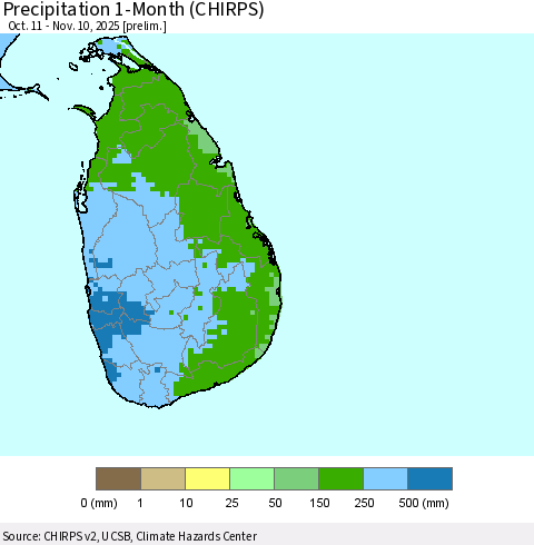 Click to view a chart of Precipitation 1-Month (CPC) agro-meteorological zones in Sri Lanka Click to view the meta data